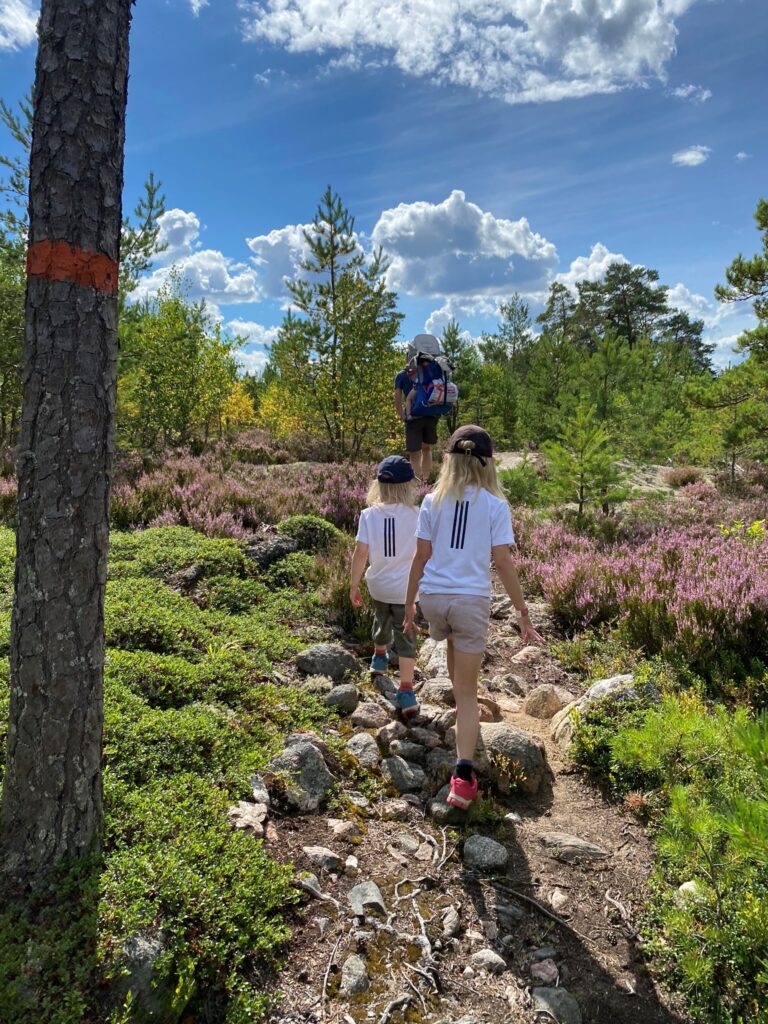 -Sköna skor! Som vanligt gäller kläder efter väder. Men extra viktigt när man ska vandra med barn är att de får gå i skor som är sköna och lätta att springa och leka runt i.