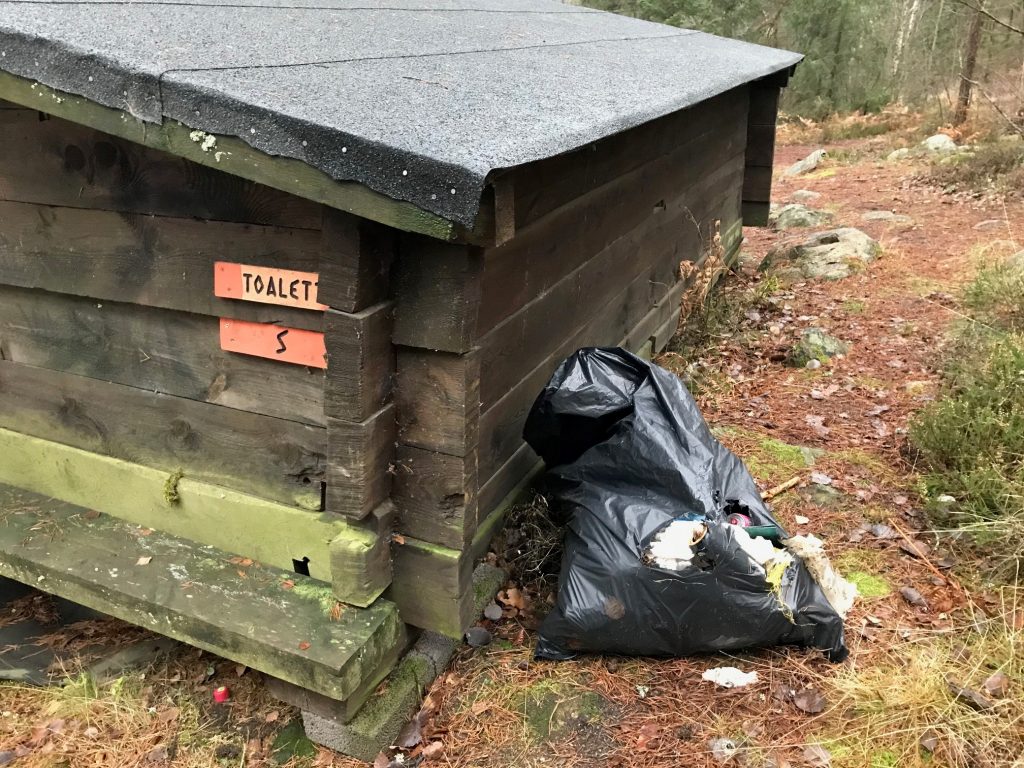 Lämna inget skräp efter dig på Sörmlandsleden! Vi har inga soptunnor. Nedskräpning drabbar den etappansvarige, som redan lägger ner många oavlönade timmar på att sköta leden. Det ligger inte i dennes ansvar att bära andras skräp genom skogen.